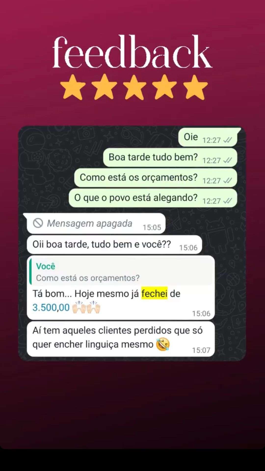 Como fundadora da Giovanelli Digital, minha agência de consultoria de marketing para tatuadores já ajudou diversos artistas a sairem do ZERO para mais de 100 MIL de faturamento mensal. Por isso, me dedico diariamente a impulsionar os resultados dos meus clientes.